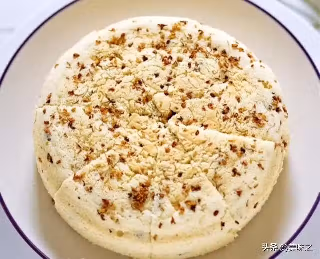 12、在蛋糕糊表面撒上干桂花,用保鮮膜將模具包緊。