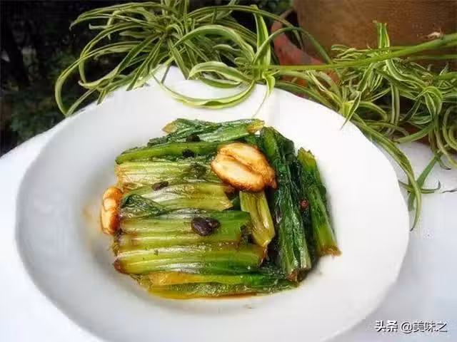 油麥菜1根、油適量、鹽適量、老乾媽豆豉醬適量、蒜米適量。