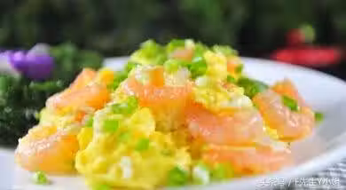 2、雞蛋3隻加少許鹽,雞精打勻,鍋燒熱下油,放入蝦仁滑熟。