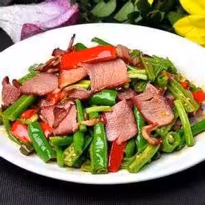 2.將臘肉臘腸切片待用。青椒,紅椒切塊。