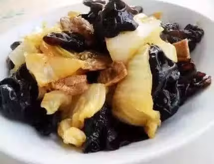 配料:鮮木耳、白菜、臘腸、鹽、油