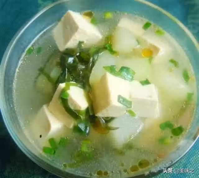冬瓜、豆腐、泡發海帶絲、植物油、小蔥、香油、水澱粉、鹽、生抽、醋、味精。
