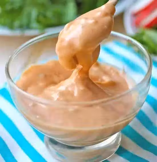 做法: 將洋蔥、酸青瓜用攪拌機打碎後加入萬尼汁內,再將番茄沙司加入攪勻呈粉紅色即可。