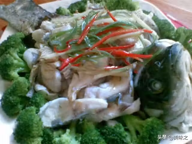 草魚適量、紅辣椒適量、大蔥生薑適量、蒜頭適量、西蘭花菜適量、黑木耳適量、雞蛋適量、鹽適量、蒸魚豉油適量、料酒適量、澱粉適量、食用油適量、胡椒粉適量。