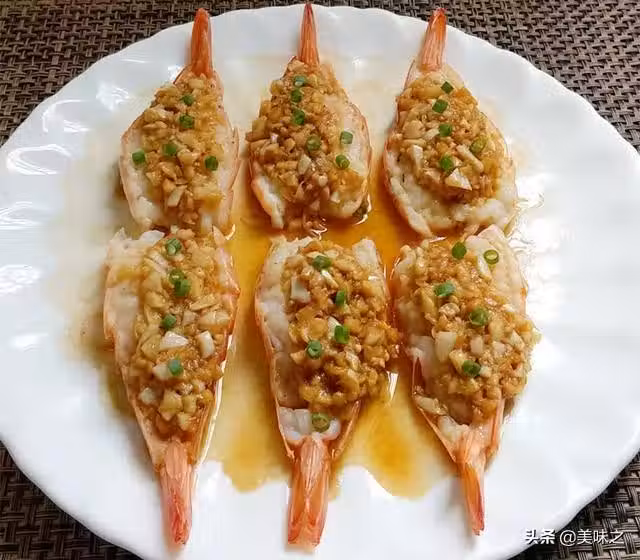 5、往蝦身淋上調製好的蒜蓉。