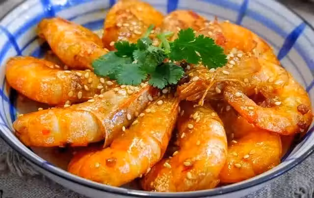 (3)起鍋燒油,油熱後,放入生薑蒜末爆香,下入大蝦翻炒至變色。