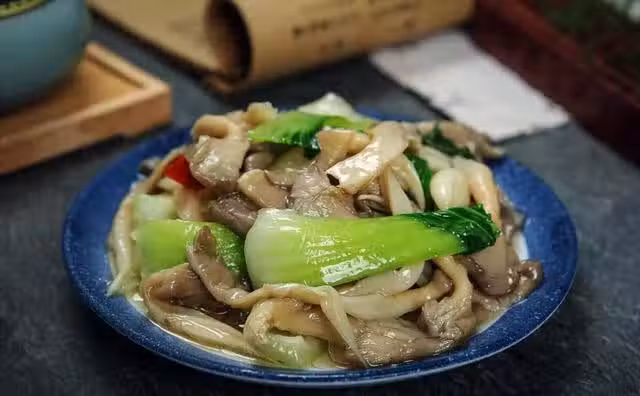 【蘑菇炒小油菜】所需食材:蘑菇(如平菇、香菇等)、小油菜、蒜末、食用油、鹽、生抽
