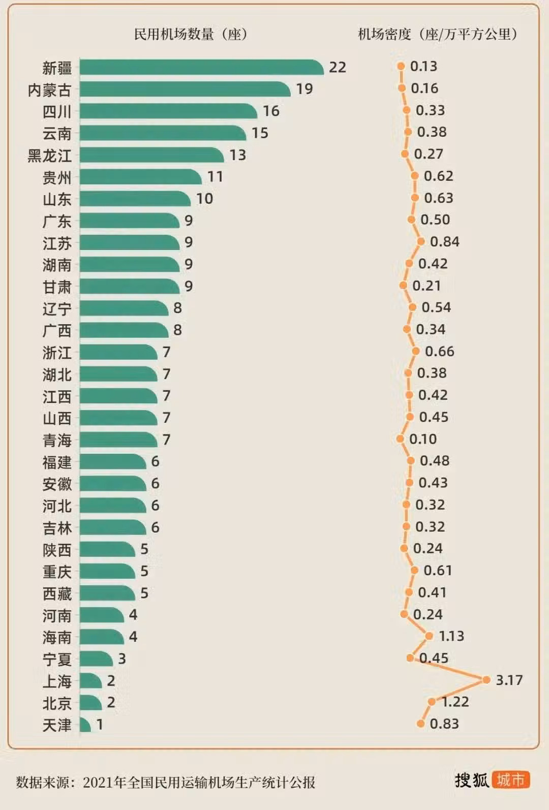 作為經濟大省的廣東、江蘇,都只有9個機場;而戶籍人口第一省的河南,更是只有4座機場,在一眾省份中墊底。
