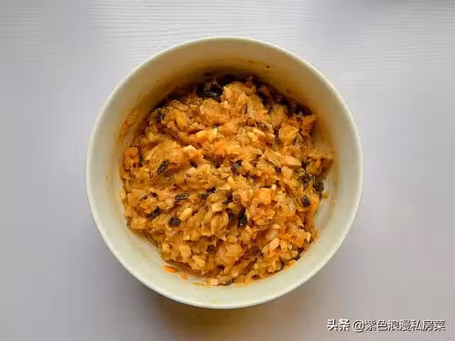 3.肉餡中放適量的鹽,一勺料酒,一勺生抽,一勺澱粉,適量的胡椒粉,沿一個方向攪拌拌勻。