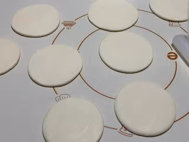 5、鍋提前加熱一下,再把生胚放進去,中小火火慢慢烙,中間蓋上鍋蓋熟的更快,等到有大泡鼓起來的時候翻面繼續烙,烙至兩面金黃色,按壓能迅速回彈就差不多了,盛出來備用;