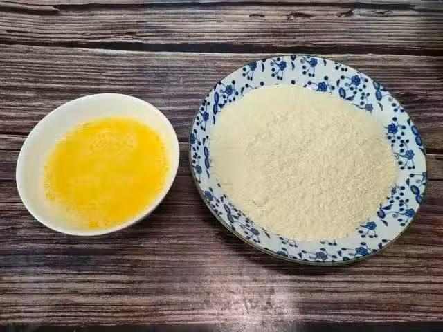 4、把腌制好的雞翅根取出,放在炸雞裹粉中翻滾幾下,讓翅根表面均勻地裹上裹粉。