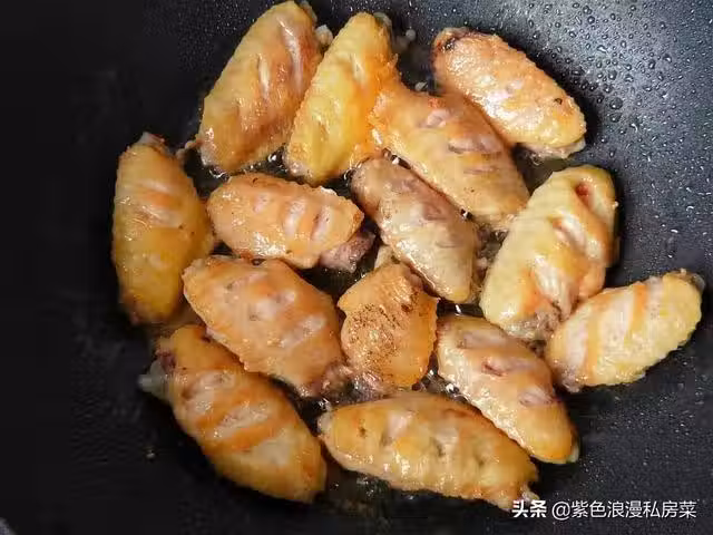 7.放入雞翅,翻炒均勻。