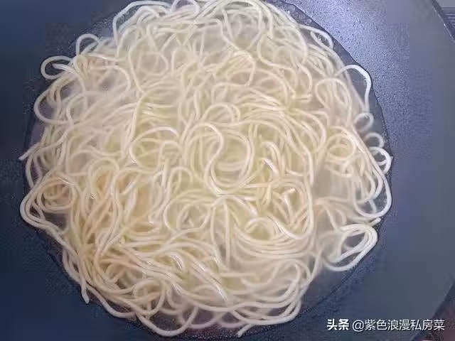 3.鍋中放清水,水開後放入鹼面,焯水10秒鐘撈出,我買的是撣好的鹼面,在後面美食小貼士裡面會說到如何撣面的。