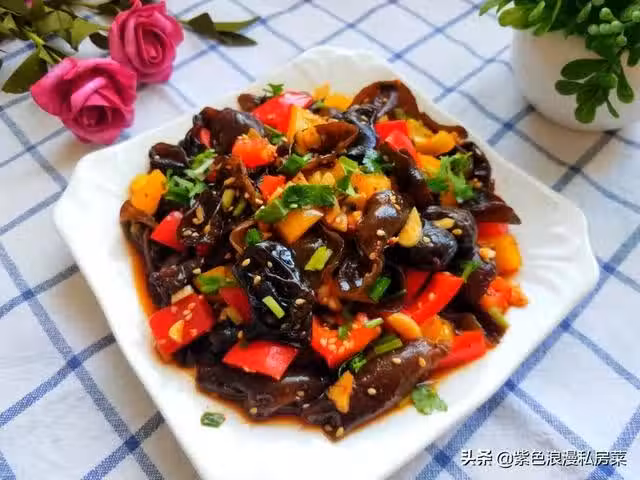 4.涼拌汁倒入木耳彩椒中拌勻即可食用。