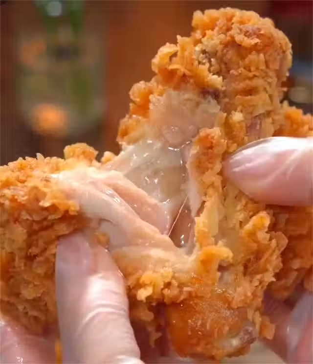 步驟四:鍋中油熱,六成油溫,將雞腿下鍋炸,中小火炸8分鐘即可。表皮酥脆,內里嫩滑,媲美炸雞店。