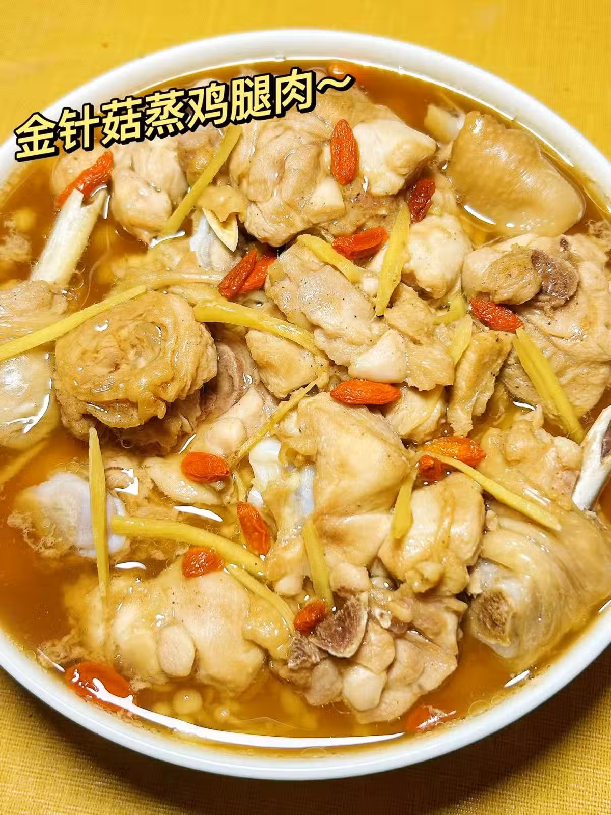 因為這道菜,我被全家人夸啦,味道特別好吃。|||今天分享這道金針菇蒸雞腿肉,大人小孩都愛吃,味道鮮美,連湯汁都不放過,好吃到停不下來,喜歡的家人們趕緊安排吧。