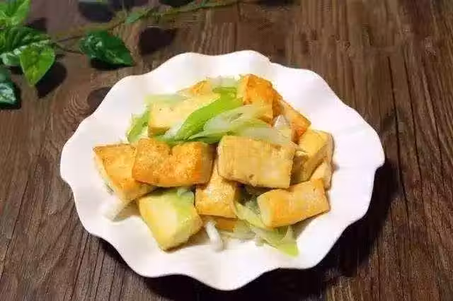 食材:豆腐 400克蔥 150克鹽 3克植物油 3湯匙