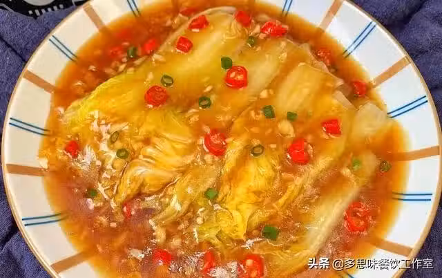 4熱鍋入油,放入蒜末和小米辣炒香,倒入醬汁,煮至粘稠,最後淋在娃娃菜上即可。