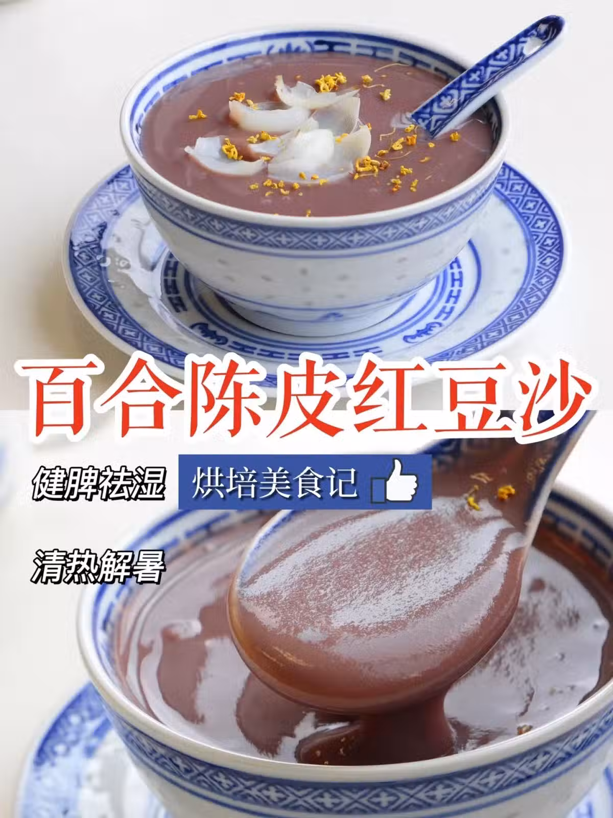 紅豆100克,水800毫升,陳皮1克,冰糖25克,鮮百合適量