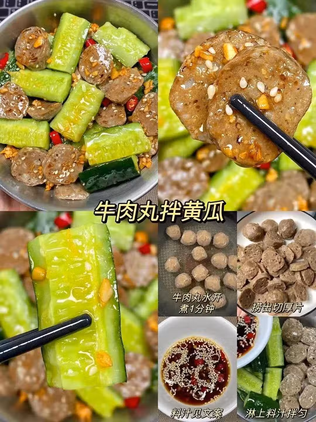 主料:牛肉丸、黃瓜。配料:醬汁。