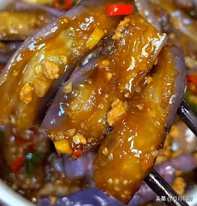 1.長茄子洗乾淨切兩段,水開後放入茄子隔水蒸3—5分鐘,軟後晾涼撕成條狀。