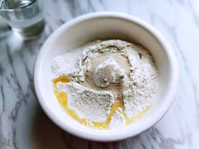 2、接著是用筷子來攪拌,攪拌成絮狀就行,拌好之後再揉成麵糰,直接蓋上蓋子來發酵。