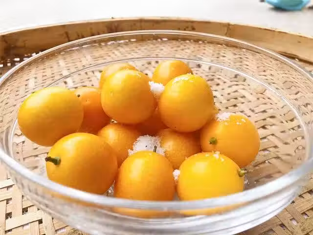 切薄片後可以看到金桔裡面有金桔籽,金桔籽雖然苦,但是它含有豐富營養,且有藥用的價值哦,所以金桔籽別去除哦。將所有的金桔切成薄片後,放入大碗中,碗中加入適量的冰糖,攪拌充分混合。