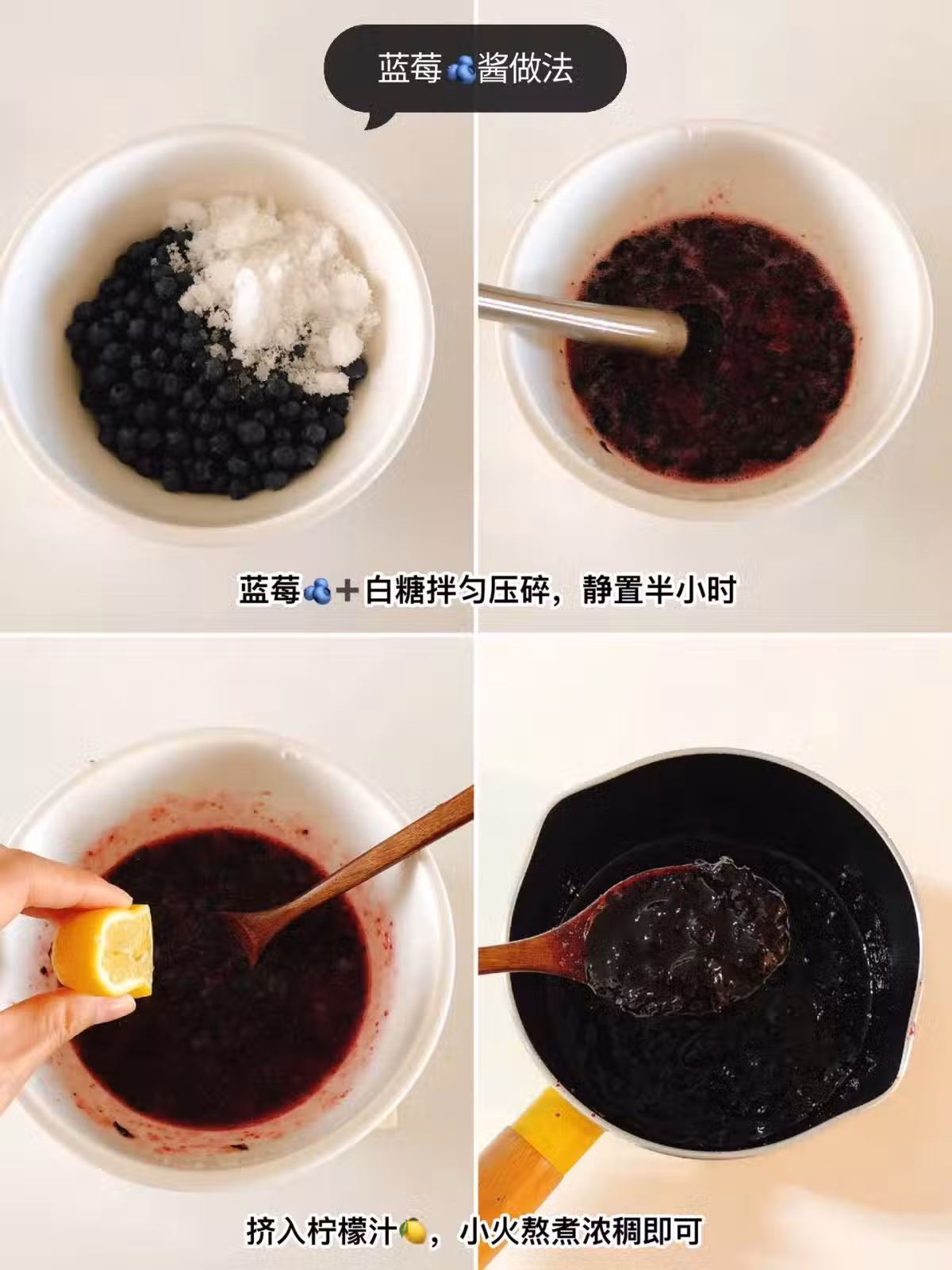 牛奶100g|糖 30g|濃稠酸奶150g|吉利丁8g|燕麥30g|藍莓醬120g