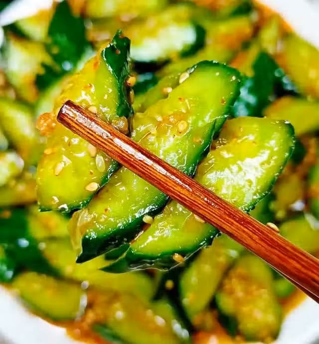 步驟二:黃瓜洗凈,去掉頭尾,拍扁切段,加1勺鹽,腌制10分鐘。倒掉腌出的水分,加入調好的料汁拌勻即可。夏天到了這個涼拌拍黃瓜估計是大多人都愛吃的一道菜,很是脆爽可口。