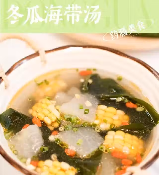 冬瓜300克 玉米1根 海帶結50克