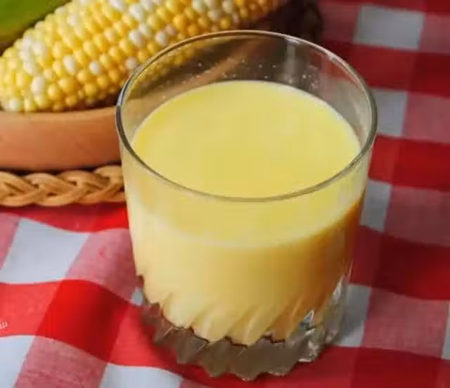 【步驟】兩根甜玉米去皮去須洗凈後,將玉米粒用刀切下來;玉米粒放入豆漿機,加入400毫升鮮奶和400毫升清水;啟動豆漿機,程序完成後,用濾網濾去玉米渣即可,沒有豆漿機的話,可以先把玉米粒加水和奶煮熟後,用攪拌機打漿。