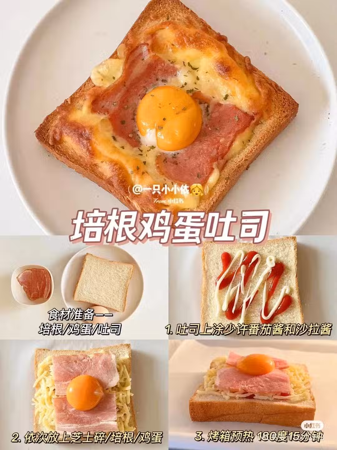 培根、雞蛋、吐司、番茄醬、沙拉醬