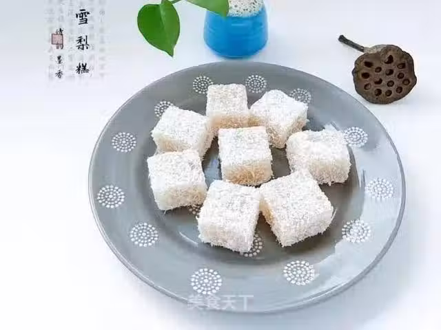 食材:梨、玉米澱粉、冰糖、椰蓉