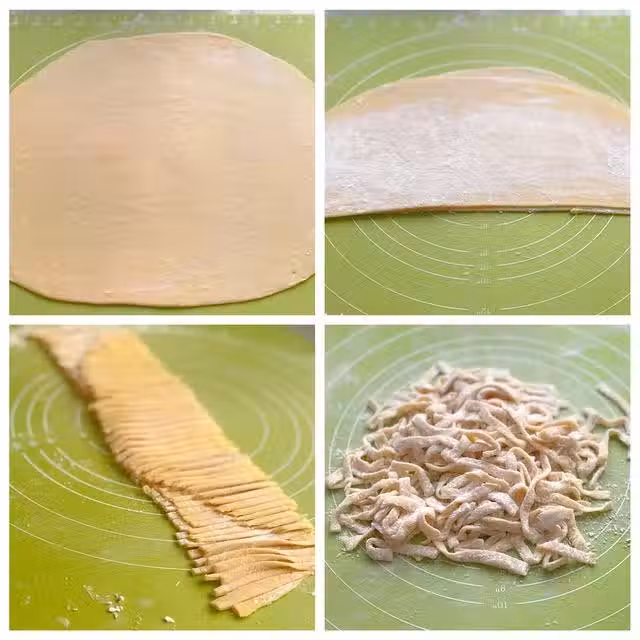 3、鍋內加油燒熱,在將麵條下鍋炸之前,最好先測試一下油溫,把一根麵條放進油鍋中,如果麵條能夠迅速浮起來,就說明油溫已經可以了。接著分次將麵條放進鍋中炸制微黃即可撈出瀝油備用。這個放進鍋中炸十幾秒基本就可以了,不要為了圖省事一下子都倒進鍋中,這樣容易炸糊。