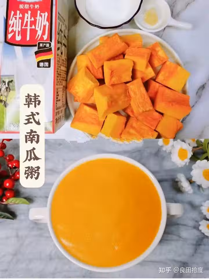 做法:南瓜去皮切塊蒸熟壓成泥,加入牛奶放入榨汁機打成糊狀;糯米粉中加清水攪拌均勻;將打好的南瓜糊和糯米糊一起倒入鍋內,小火邊煮邊攪拌,煮至粘稠。