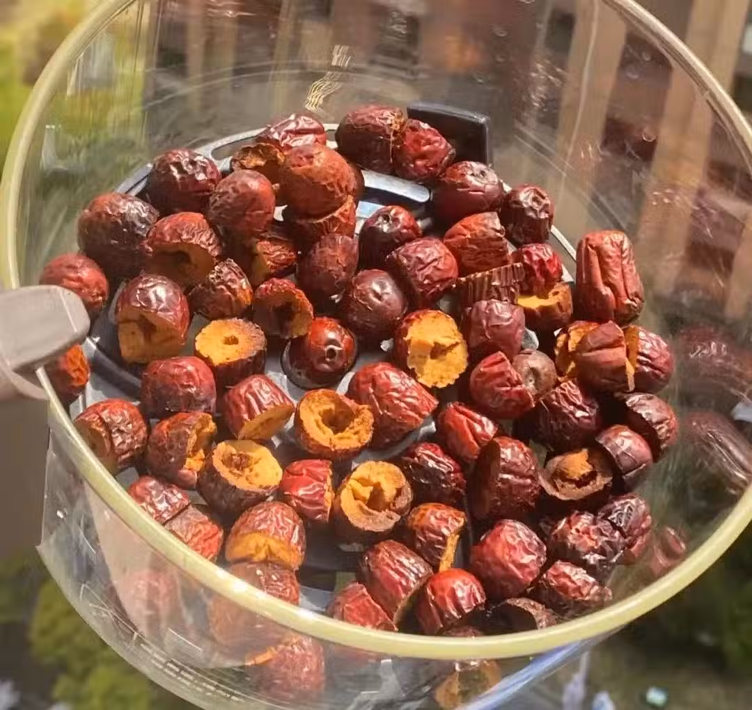 棗子洗凈切開,去核。180度15分鐘重複3次,每15分鐘拿出來晃一下,總計45分鐘。