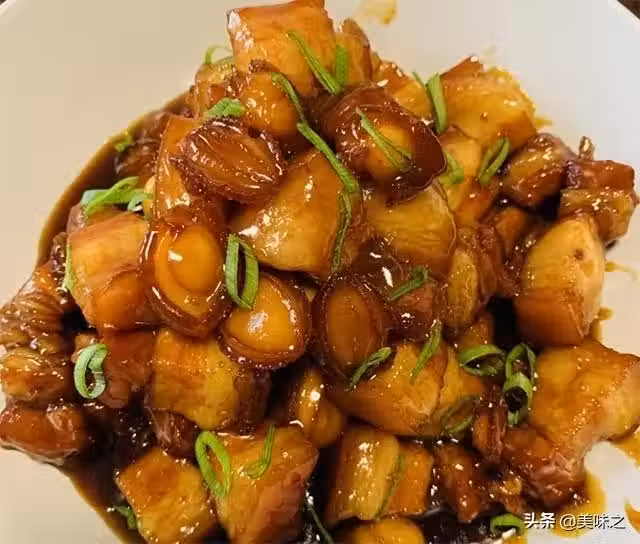 下五花肉一條、小鮑魚若干、蔥姜適量、冰糖適量、鹽適量、海鮮醬油適量、料酒適量、老抽適量。