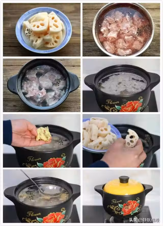 5、湯煲中浮沫撇乾淨之後,把蓮藕放進去。