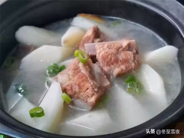 【排骨山藥湯】所需材料:排骨500克、山藥500克、蔥1段、姜2片、料酒1湯匙、白鬍椒粉1茶匙、