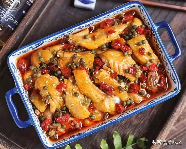 三黃雞、藤椒、干辣椒、辣椒油、薑片、蒜末、鹽、胡椒粉、醬油、蚝油、料酒。