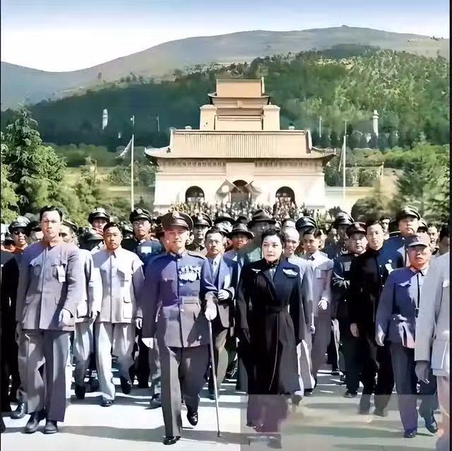 宋美齡和蔣介石走在隊伍的前面,此時的她們充滿了自信,蔣介石和宋美齡都不會想到,僅僅3年的時間,國軍全面崩潰。