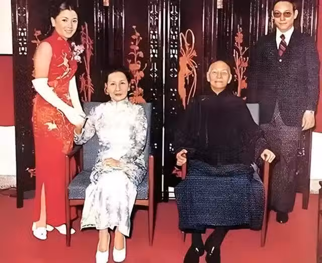 1973年,宋美齡和蔣介石在孫子蔣孝勇婚禮上的罕見合影。這年宋美齡76歲,蔣介石86歲。宋美齡的身體非常健康,而蔣介石的身體大不如從前,尤其是發生車禍之後,他的身體日漸衰弱,他已經無法獨自站立了。