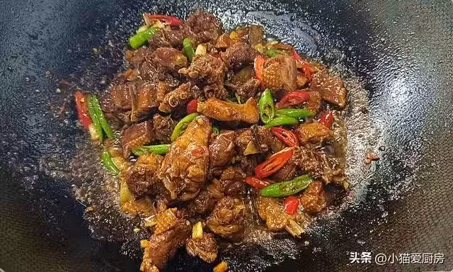 【步驟八】:鴨肉湯汁收濃,出鍋的時候放入一勺鍋邊醋,撒上小蔥,翻炒均勻出鍋成菜。