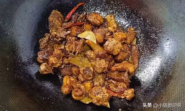 【步驟六】:然後放入生抽2勺、老抽1勺,翻炒均勻,把鴨肉炒上色,倒入啤酒沒過鴨肉,放入幾粒冰糖,大火燒開,用小火燉煮半個小時。