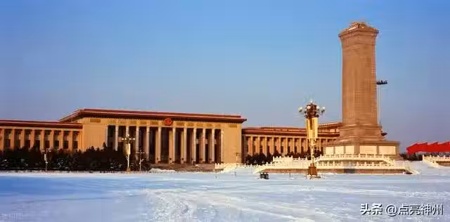 天安門廣場呈長方形,長880米,寬500米,總面積達44萬平方米,可容納100萬人舉行集會。在廣場的中軸線上,從北向南依次矗立著國旗杆、人民英雄紀念碑、毛主席紀念堂、正陽門城樓。