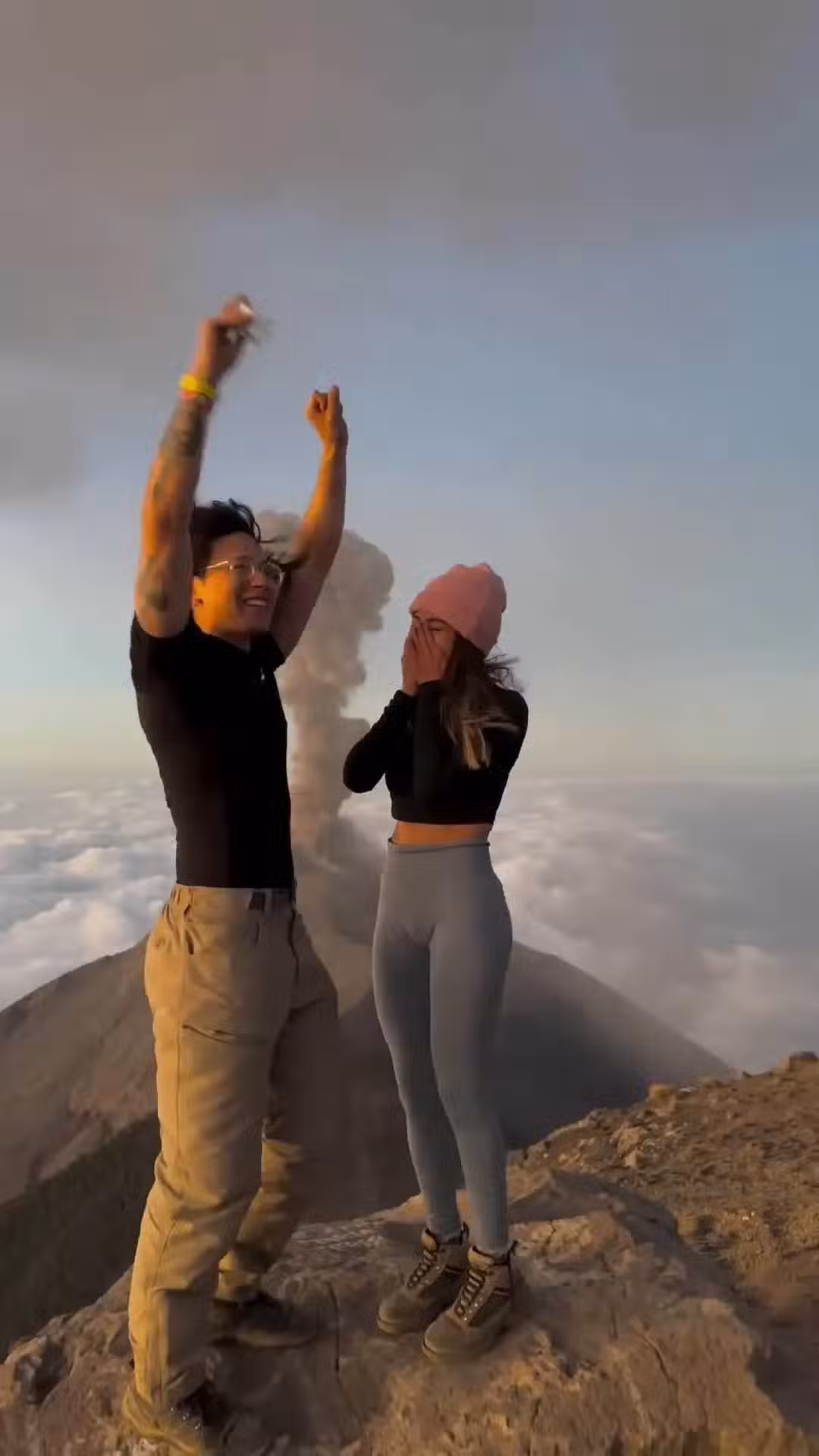 男子「火山頂」求婚,竟意外碰到「火山爆發」,鏡頭記錄全過程