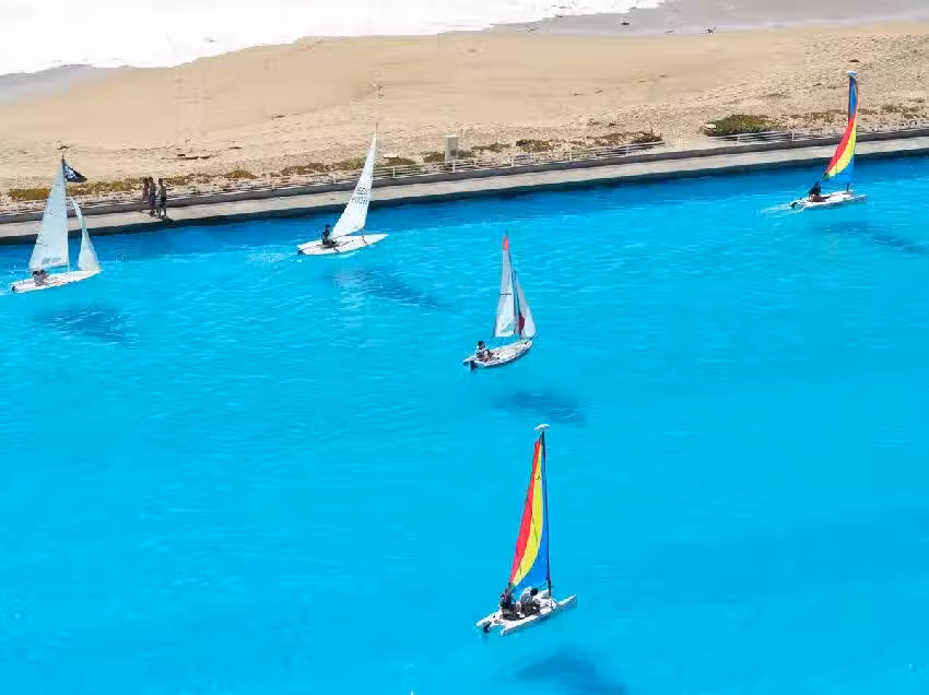 這真的是泳池?「世界最大泳池」比一般大6000倍 遊客到場傻眼:這是海吧?還能開船