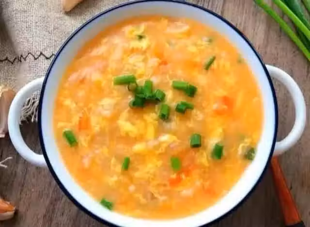 5、煮開後把雞蛋液倒入鍋中,放入少許鹽,蔥花煮至麵疙瘩熟透即可。