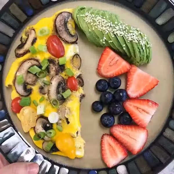 早餐:酪梨+草莓+藍莓+香菇番茄歐姆蛋