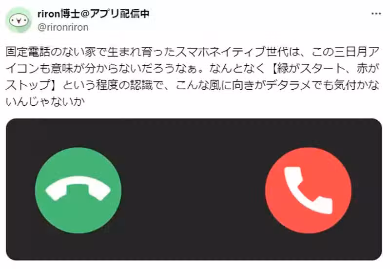 這位暱稱「riron博士」的日本X網友,最近將手機來電圖示上的綠色和紅色話筒方向對調,測試大家看不看得出來,隨即引發網友議論。